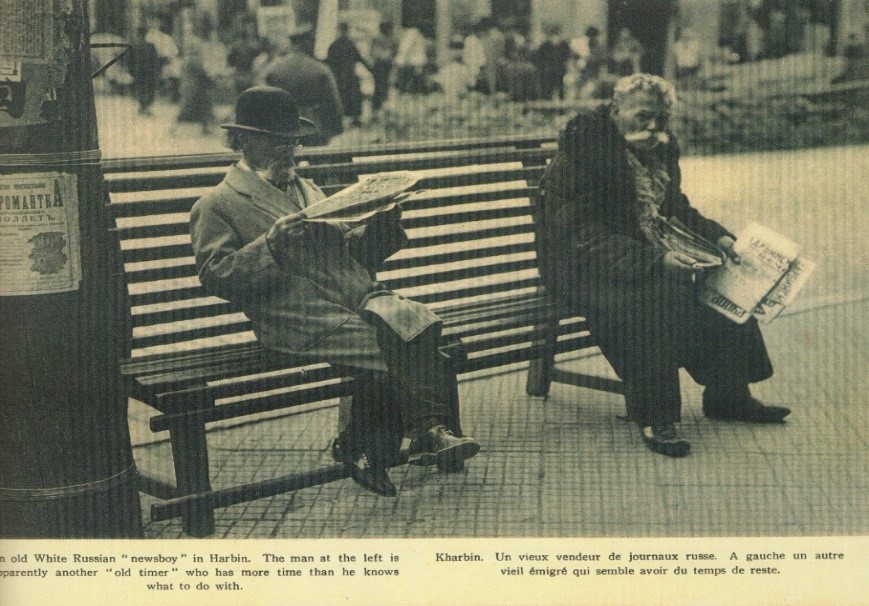 3. Рис. 2. Харбинские эмигранты [подпись на открытке: Старый русский продавец газет. Человек слева – явно старожил, у которого много времени, и он не знает, как себя занять.]. Ист.: Русская коллекция Гавайского университета
