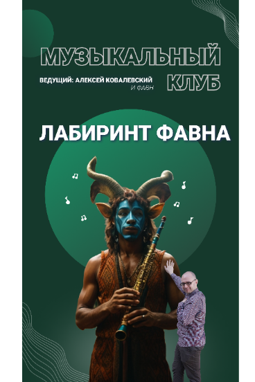 1. Рис. 1. Рекламная брошюра музыкального клуба для меломанов «Лабиринт Фавна» (аватар Фавна был сгенерирован с помощью сервиса Leonardo AI)